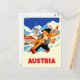 Winter in Austria. Happy man is going to ski Postcard