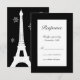 A beautiful Eiffel Tower and sparkling, crystal snowflakes decorate the back of this RSVP. It is printed on the basic paper; however, I suggest the metallic ice paper for added glitz. This is part of the Paris in Winter wedding line.