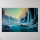 Oil landscape painting in the style of Roger Dean of a deep river canyon with ice and snow.
