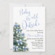 Winter It's Cold Outside Blue Bow Baby Shower Invitation