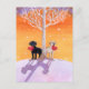 Winter Labradors Painting for Labrador Fans! Sweet and touching Labrador Retriever painting Postcard in white snow. Innocent Black Labrador and Yellow Labrador are standing behind the winter tree with a red heart each. Beautiful sunset scenery in winter. Lots of hearts in the picture. Painted by Naomi Ochiai from Japan.