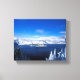 Wrapped canvas art is shown with a photo print of a beautiful winter lake scene.