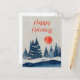 Winter Landscape Forest Moon Navy Blue Drawing Holiday Postcard