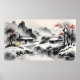 A winter landscape with a cottage and mountains, chinese ink painting style