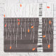 The Last of the Leaves. Minimalist contemporary landscape painting featuring a tree in late autumn or fall, at the beginning of winter with bright colorful falling leaves on a monochrome black and white abstract background. Original art by Nic Squirrell.
