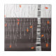 The Last of the Leaves. Minimalist contemporary landscape painting featuring a tree in late autumn or fall, at the beginning of winter with bright colorful falling leaves on a monochrome black and white abstract background. Original art by Nic Squirrell.