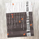 The Last of the Leaves. Minimalist contemporary landscape painting featuring a tree in late autumn or fall, at the beginning of winter with bright colorful falling leaves on a monochrome black and white abstract background. Original art by Nic Squirrell. Blank on the back for your own greeting.