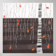 The Last of the Leaves. Minimalist contemporary landscape painting featuring a tree in late autumn or fall, at the beginning of winter with bright colorful falling leaves on a monochrome black and white abstract background. Original art by Nic Squirrell.