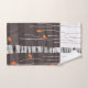 The Last of the Leaves. Minimalist contemporary landscape painting featuring a tree in late autumn or fall, at the beginning of winter with bright colorful falling leaves on a monochrome black and white abstract background. Original art by Nic Squirrell.