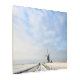 Photo on metal print of a minimalistic view on a winter landscape in Holland with a path and a canal towards a windmill under a layer of snow with nice clouds at sunrise in the dutch countryside.