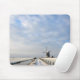Photo mousepad with a minimalistic view on a winter landscape in Holland with a path and a canal towards a windmill under a layer of snow with nice clouds at sunrise in the dutch countryside.