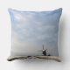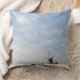 Photo throw pillow cushion with a minimalistic view on a winter landscape in Holland with a path and a canal towards a windmill under a layer of snow with nice clouds at sunrise in the dutch countryside.