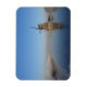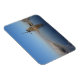 Rectangular photo magnet with a landscape in the countryside in the Netherlands in winter with a windmill, ice on the river and frosted reeds under a clear blue sky.