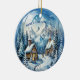 Winter Log Cabin Mountains Pinetrees Ceramic Ornament