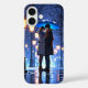 Romantic anime phone case featuring a couple sharing an umbrella under softly falling snow with glowing lantern lights. Ideal for cozy and heartwarming winter scenes.