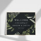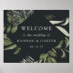 Welcome guests to your wedding with our Winter Meadow poster, featuring a geometric border of muted green watercolor greenery, foliage and botanical leaves, with "welcome to our wedding," your names, and wedding date in a chic mix of modern serif and italic typefaces.