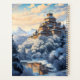 This planner features a winter illustration of a mountain fortress built on a hill and surrounded by a thick forest. Snow caps all of the trees and an ice-covered pond sits at the bottom of the hill, its glass surface reflecting the fortress. The design is the same on the front and back covers. Personalize the front with the current year.