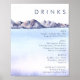This Winter Mountain wedding drinks menu poster is just what you've been looking for to complete your simple rustic moody wedding. Designed with pink and blue pastel watercolor that blends beautifully into navy and blush highlights all of which perfectly capture an evening in nature. It is sure to bring your minimalist colorado adventure vibe together in a beautiful way! Keep it as is, or choose to personalize it with your photos! You can also look to other items in this collection to truly bring your whole wedding together!