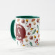 This durable mug features a winter forager pattern including acorns, pine needles, leaves, berries, and of course mushrooms! Personalize the modern monogram letter surrounded by cute laurels. Inside and handle colors are available in several choices.