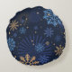 Winter Night: Blue Snowflake Pattern. Round Pillow