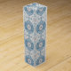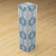 Unique gift box for wine with a wintry ogee pattern in blue and gray. Pattern consists of winter wonders such as snowflakes, swirls, flurries, and a vintage inspired Christmas ornament.