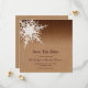 A beautiful snowflake on an illustrated burlap background accents this Save the Date. It is shown on the basic paper; however, I recommend the weight and texture of the linen paper to enhance the burlap look.