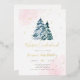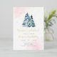 Celebrate your baby’s first birthday with this soft pastel pink and gold winter birthday invitation featuring a watercolor pine tree forest and snowflakes in your choice of silver, gold or rose gold real foil. With elegant handwritten calligraphy.