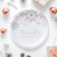 winter onederland pink and silver snowflakes first birthday paper plates.