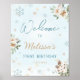 Winter Onederland First 1st Birthday Blue Welcome Poster