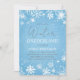 Celebrate your little one’s magical milestone with this Winter ONEderland First Birthday Invitation, featuring a frosty blue background sprinkled with white snowflakes and softly falling snow. The elegant mix of modern script and serif fonts adds a touch of sophistication to this adorable winter theme.