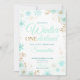 Winter Onederland Green Gold Snowflake Birthday Invitation
