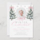 Winter ONEderland Pink Bow First Birthday Invitation