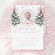 Celebrate your little girl’s first birthday with this Winter ONEderland invitation. Featuring a pink ribbon bow, snowflakes, and snowy trees, this charming design is perfect for a magical winter celebration. Elegant and sweet, it’s the ideal way to invite family and friends to your baby girl’s special day.