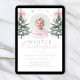 Celebrate your little girl’s first birthday with this Winter ONEderland invitation. Featuring a pink ribbon bow, snowflakes, and snowy trees, this charming design is perfect for a magical winter celebration. Elegant and sweet, it’s the ideal way to invite family and friends to your baby girl’s special day.