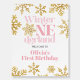 Winter Onederland first birthday with gold glitter snowflakes and pink text.