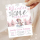 Winter Onederland Pink Silver Glitter 1st Birthday Invitation