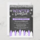 Winter Onederland Purple Chalkboard 1st Birthday Invitation