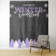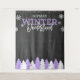This modern winter onederland birthday backdrop, features a snow forest design on a chalkboard background. The lilac purple and white colors really pop on the dark gray background. So cute for a winter 1st birthday party.
