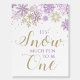 Winter Onederland Snow Much Fun to be One Sign with purple and gold snowflakes.