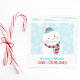 This cheerful first birthday party napkin features a cute snowman face in a red and blue striped hat and scarf on a light blue snowflake background with candy cane-style "ONEderland" text and a customizable name. A fun, festive touch for the party table at a Winter ONEderland first birthday celebration. All text is fully customizable.