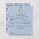 Have your baby shower guests fill out this cute baby predictions and advice card that features a cute hand drawn illustration baby penguin holding a yellow star. This adorable winter penguin themed advice card makes for a wonderful keepsake and is a fun activity for your arctic penguin themed baby shower! The back of this card features a hand painted blue and white textured star pattern that is fun and whimsical.