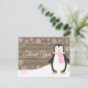 Rustic Winter Penguin Snowflake Pink Thank You Card. Pink Penguin. Rustic Wood Background. Country Vintage Retro Barn. Pink Snowflake. Love and Thanks, beautiful script font. Add your message on back or leave blank and hand write. For further customization, please click the "Customize it" button and use our design tool to modify this template.