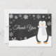 Winter Penguin Winter Snowflake Thank You Card. Penguin. Chalkboard Background. Black and White. Snowflake. Love and Thanks, beautiful script font. Add your message on back or leave blank and hand write. For further customization, please click the "Customize it" button and use our design tool to modify this template.