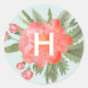 Winter Peony Monogram Classic Round Sticker