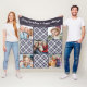 Winter Personalized Blue Gray Plaid Photo Collage Fleece Blanket
