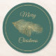 Festive Christmas party paper coasters done in a dark Kelly green with gold tone edging accent. Golden graphics of a pine cone on a pine branch, decorates the middle. Merry Christmas, in gold tone text, can be personalized to read what you want. Matching holiday party supplies and invitations are available.