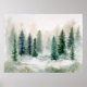 Christmas Winter Landscape with Pine Trees, Soft Misty Snow Scene in Watercolor Hand Painted.