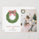 Winter Pine Wreath Stripes Red Bow Photo Christmas Holiday Card