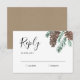 Rustic winter wedding invitation RSVP card featuring our hand-painted watercolor pinecones and foliage.
