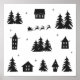 Wall Art. Winter Village. Santa Claus. House Silhouettes. Christmas Houses and Trees. Winter Holidays Decor. Black & White